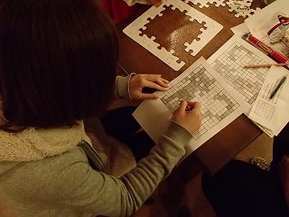 宝探しのあと、謎解きに挑戦中。